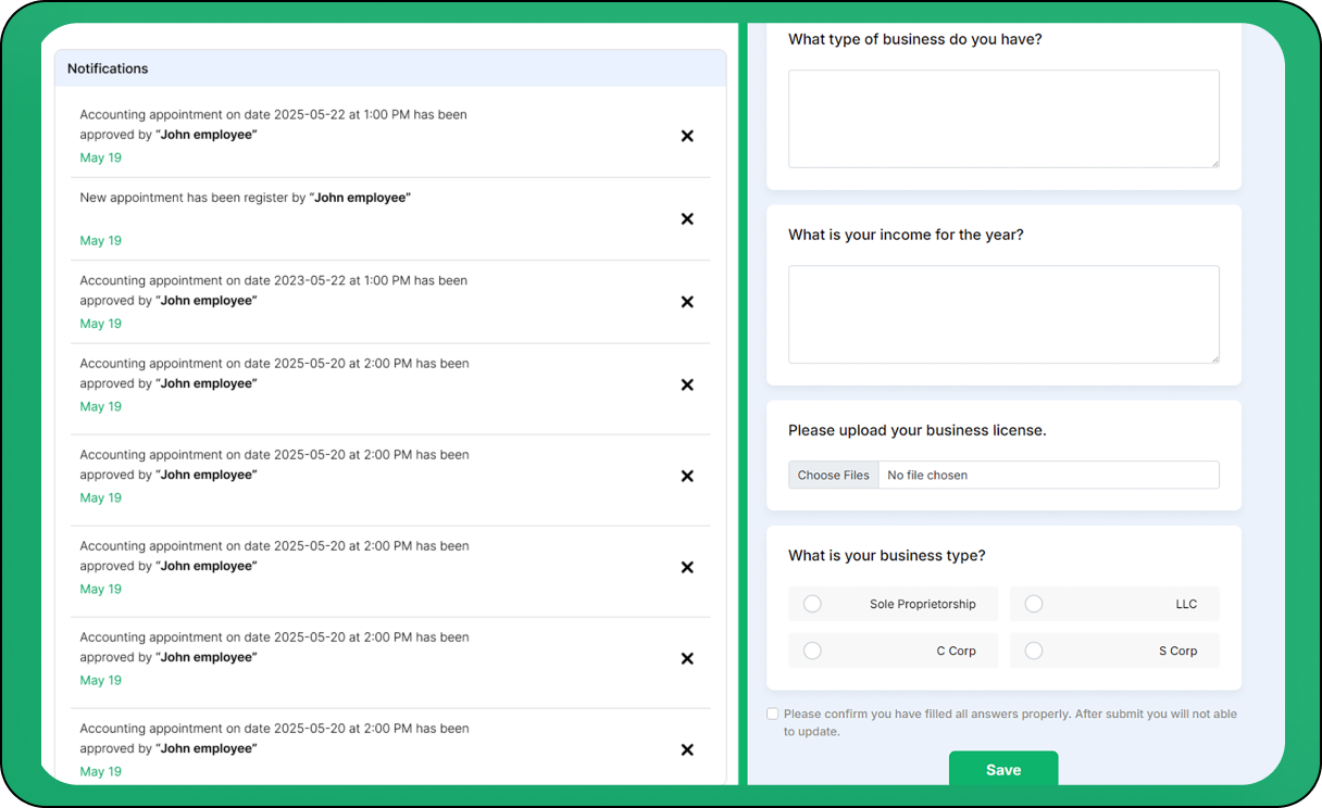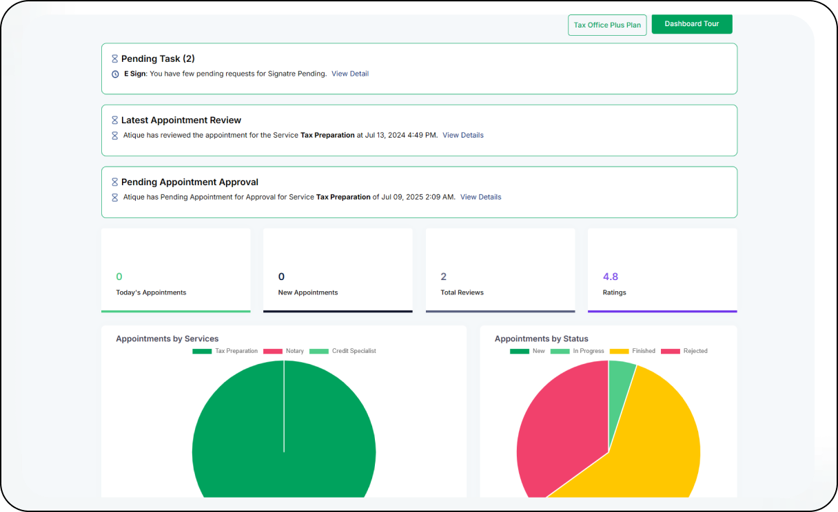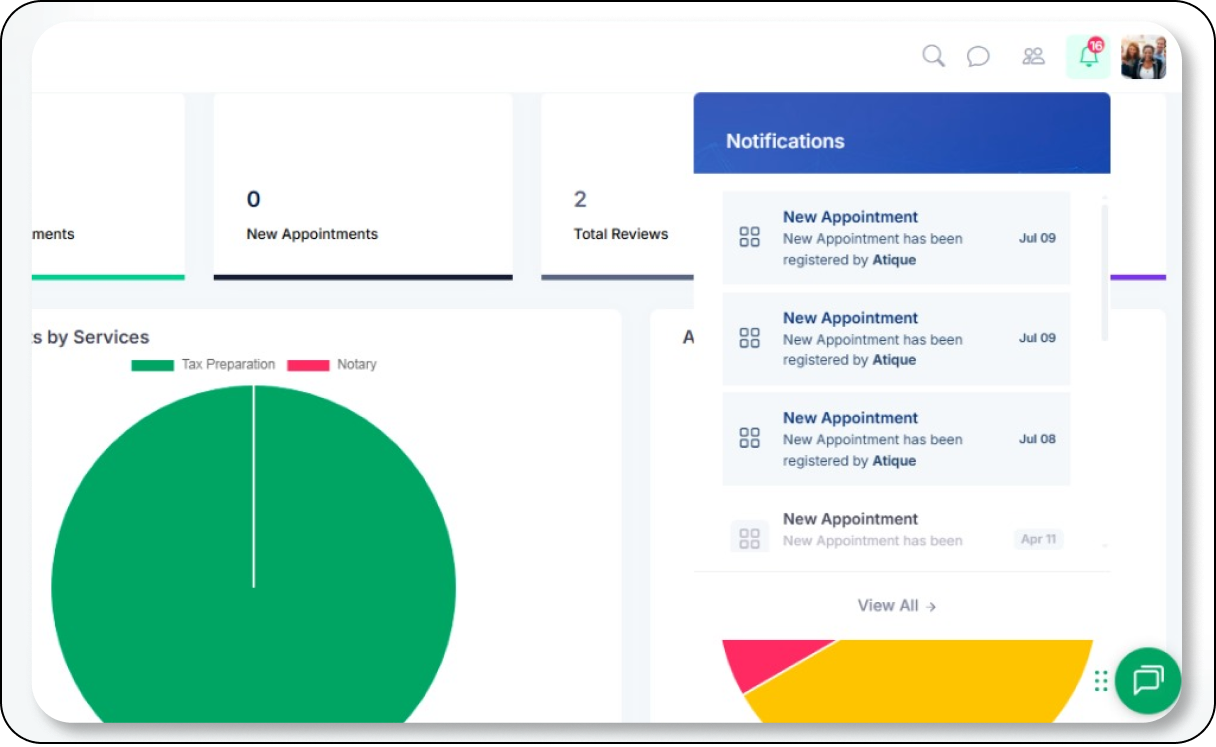 TAAX APP is your one-stop shop for success. Manage appointments, streamline workflows, connect with clients, and more – all from a single, user-friendly platform.