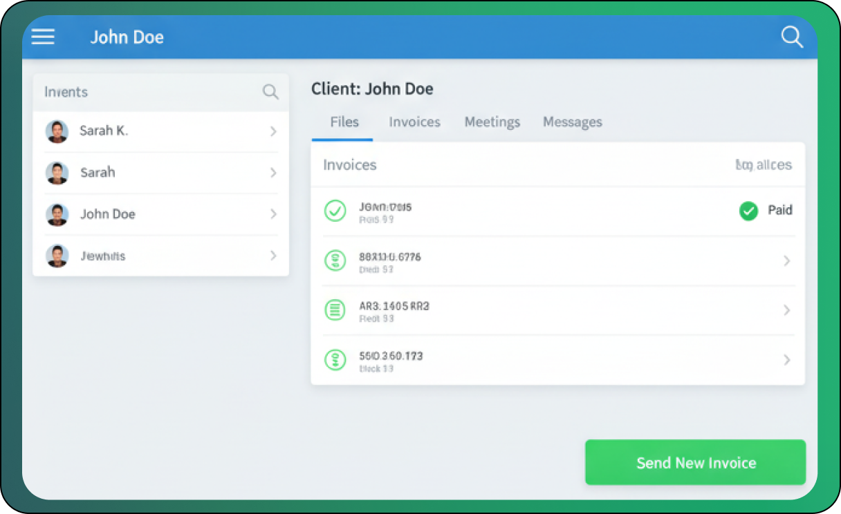 Centralize all client interactions in a secure mobile hub, including secure messaging and live video meetings, ensuring clear, organized, and auditable communication that is easy for both clients and your team to manage.