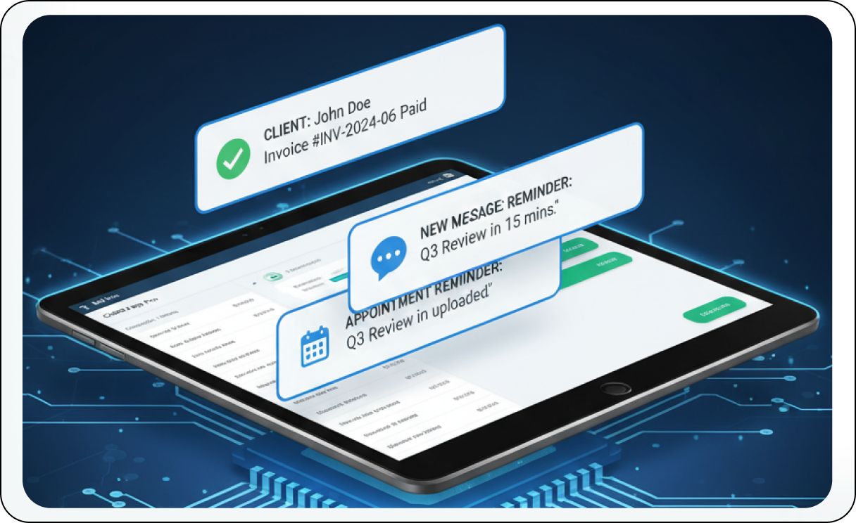 Give clients direct and immediate access to their personalized information, appointments, financial records, and communications, fostering deep trust and clarity in all your business dealings.