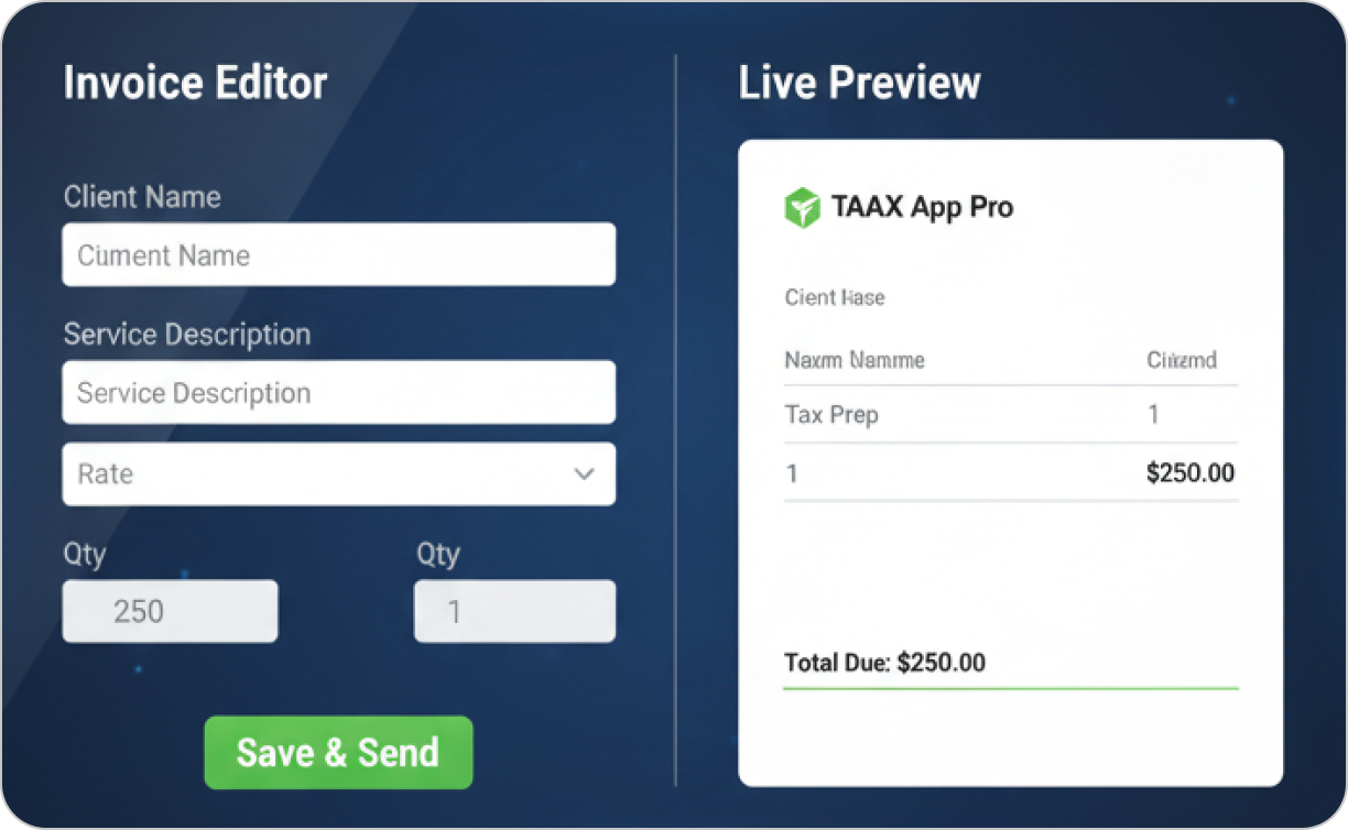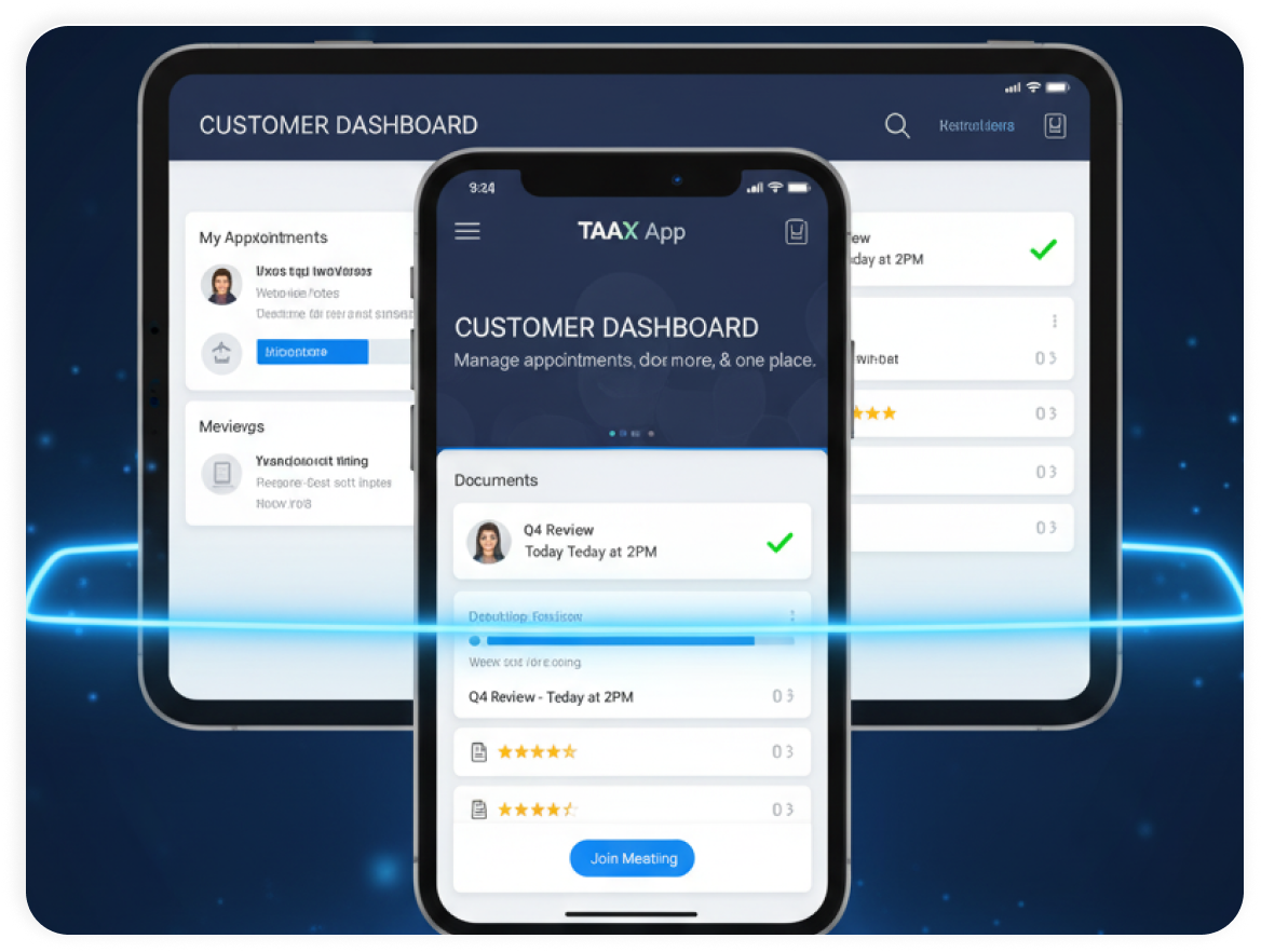 TAAX APP is your one-stop shop for success. Manage appointments, streamline workflows, connect with clients, and more – all from a single, user-friendly platform.