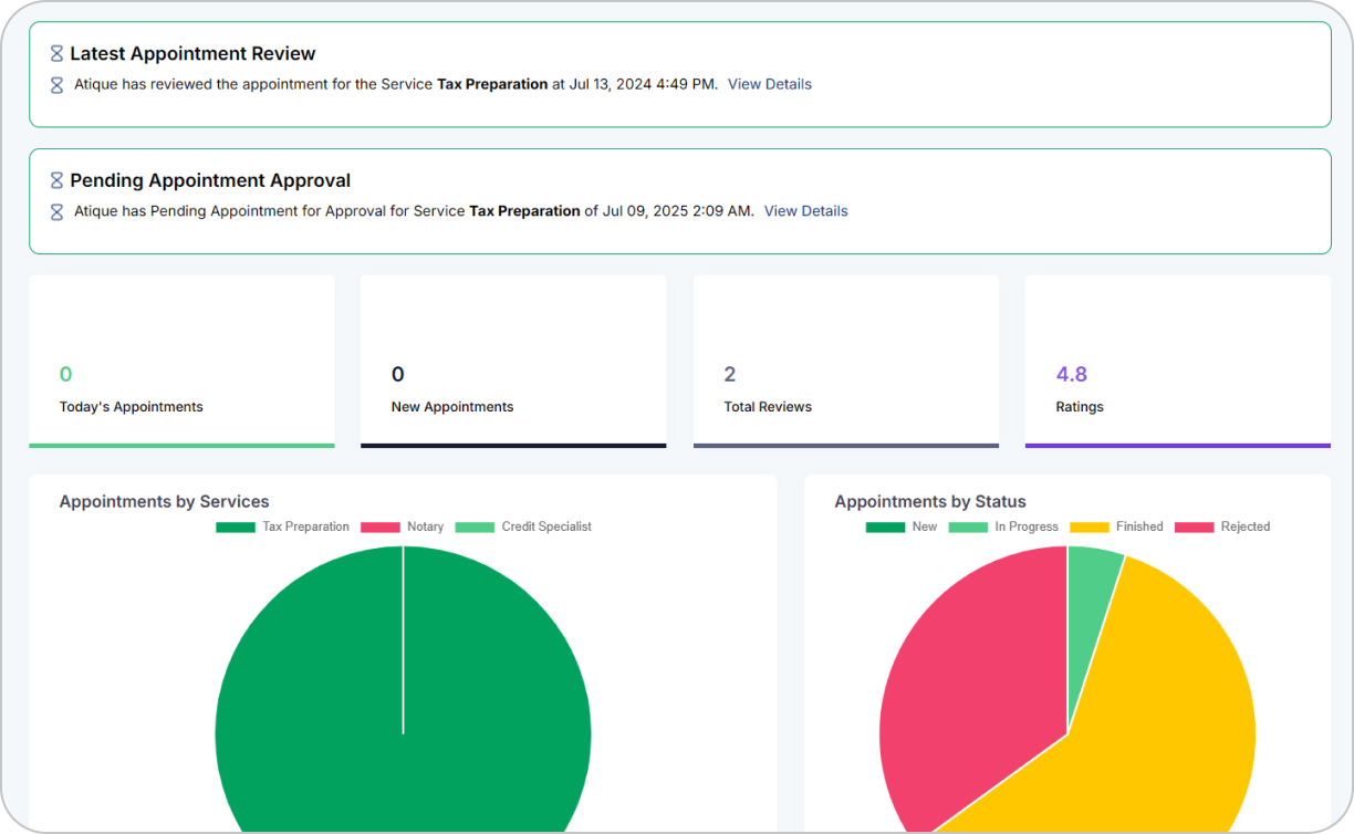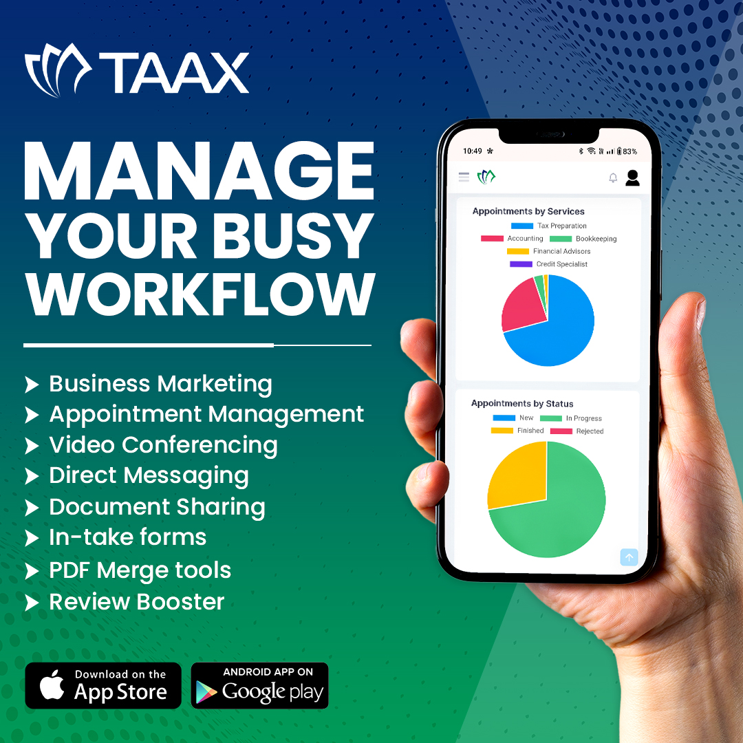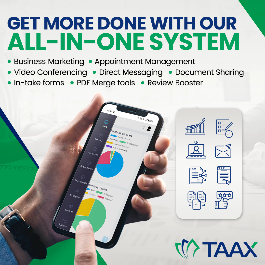 TAAX APP is your one-stop shop for success. Manage appointments, streamline workflows, connect with clients, and more – all from a single, user-friendly platform.