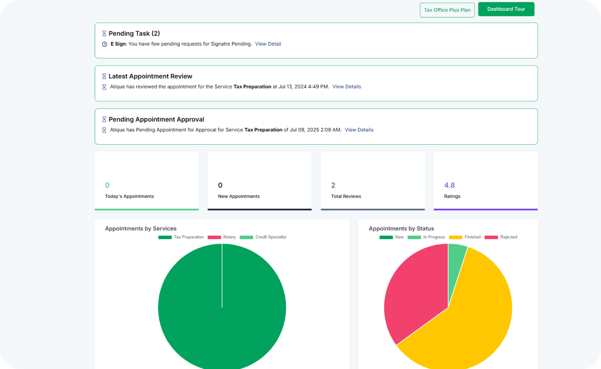 TAAX APP is your one-stop shop for success. Manage appointments, streamline workflows, connect with clients, and more – all from a single, user-friendly platform.