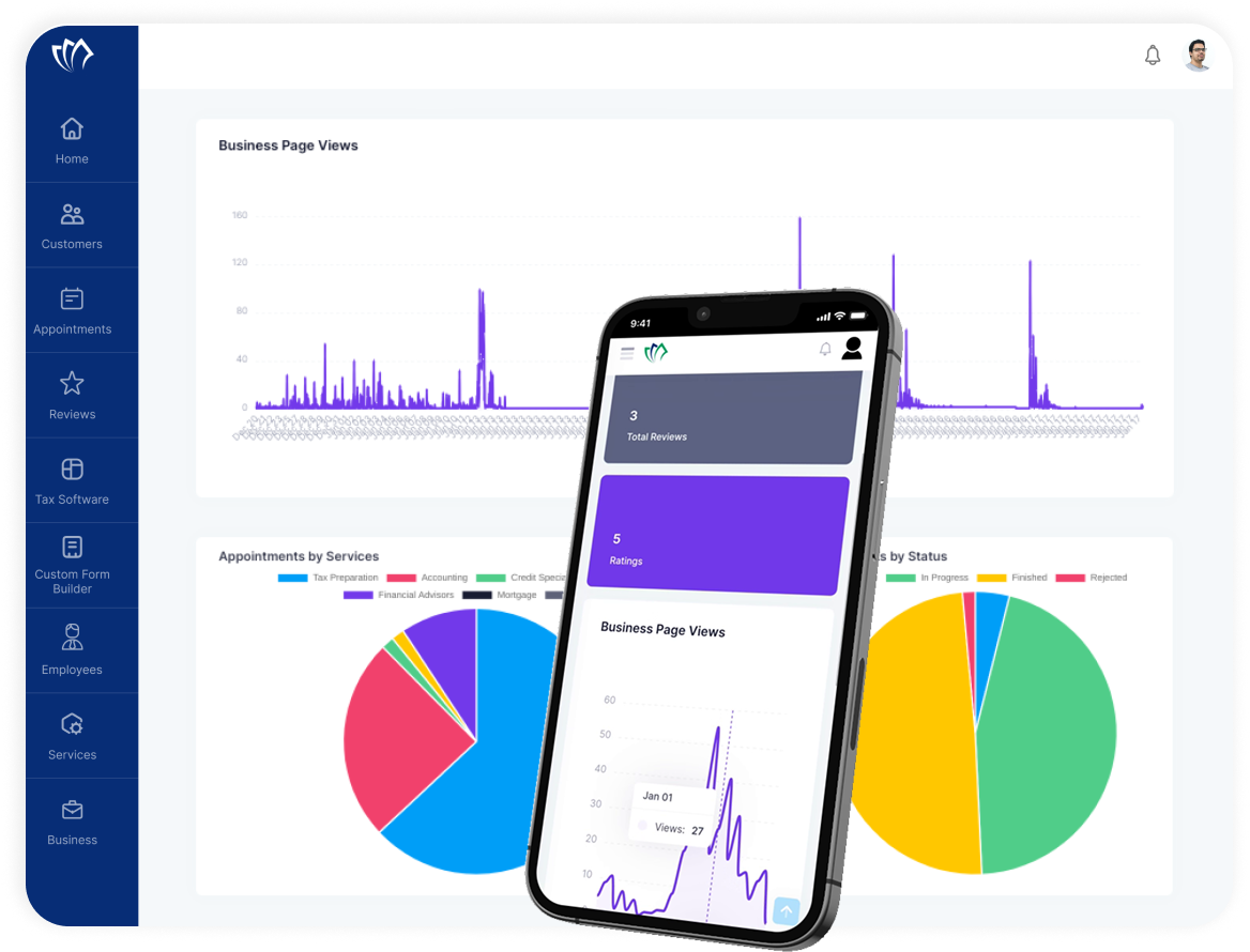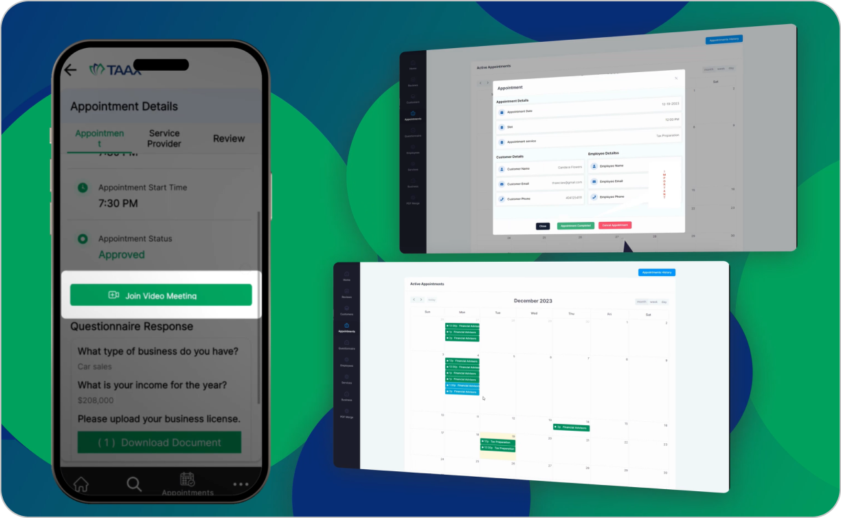 TAAX APP is your one-stop shop for success. Manage appointments, streamline workflows, connect with clients, and more – all from a single, user-friendly platform.
