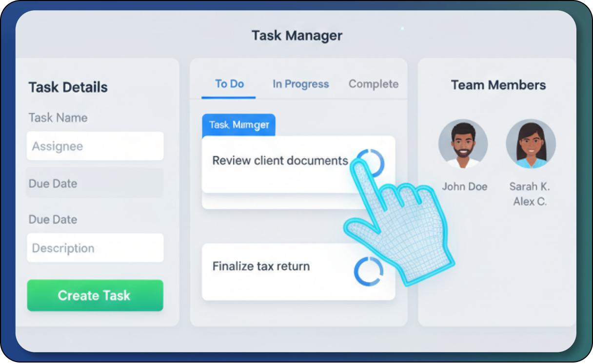 Stop missing deadlines and start achieving your business goals. Task Manager simplifies task creation, team coordination, and project oversight. Each feature is designed to boost your team's productivity and keep everyone aligned.