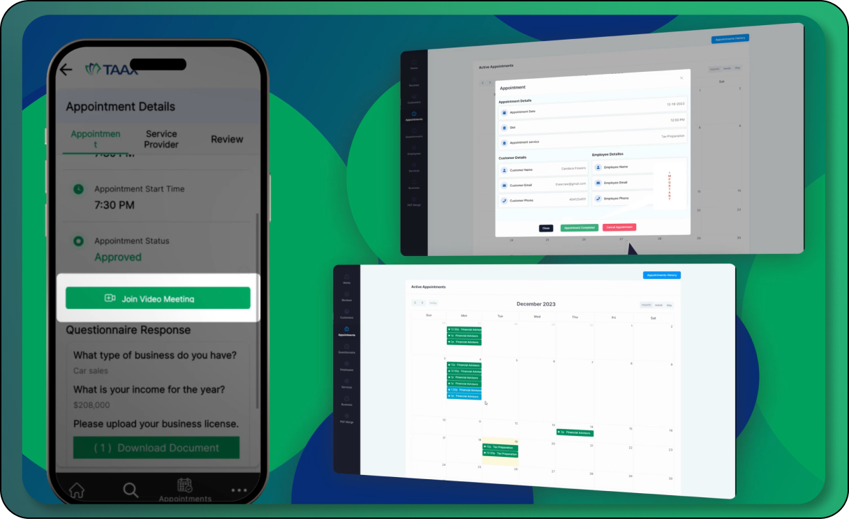 TAAX APP is your one-stop shop for success. Manage appointments, streamline workflows, connect with clients, and more – all from a single, user-friendly platform.