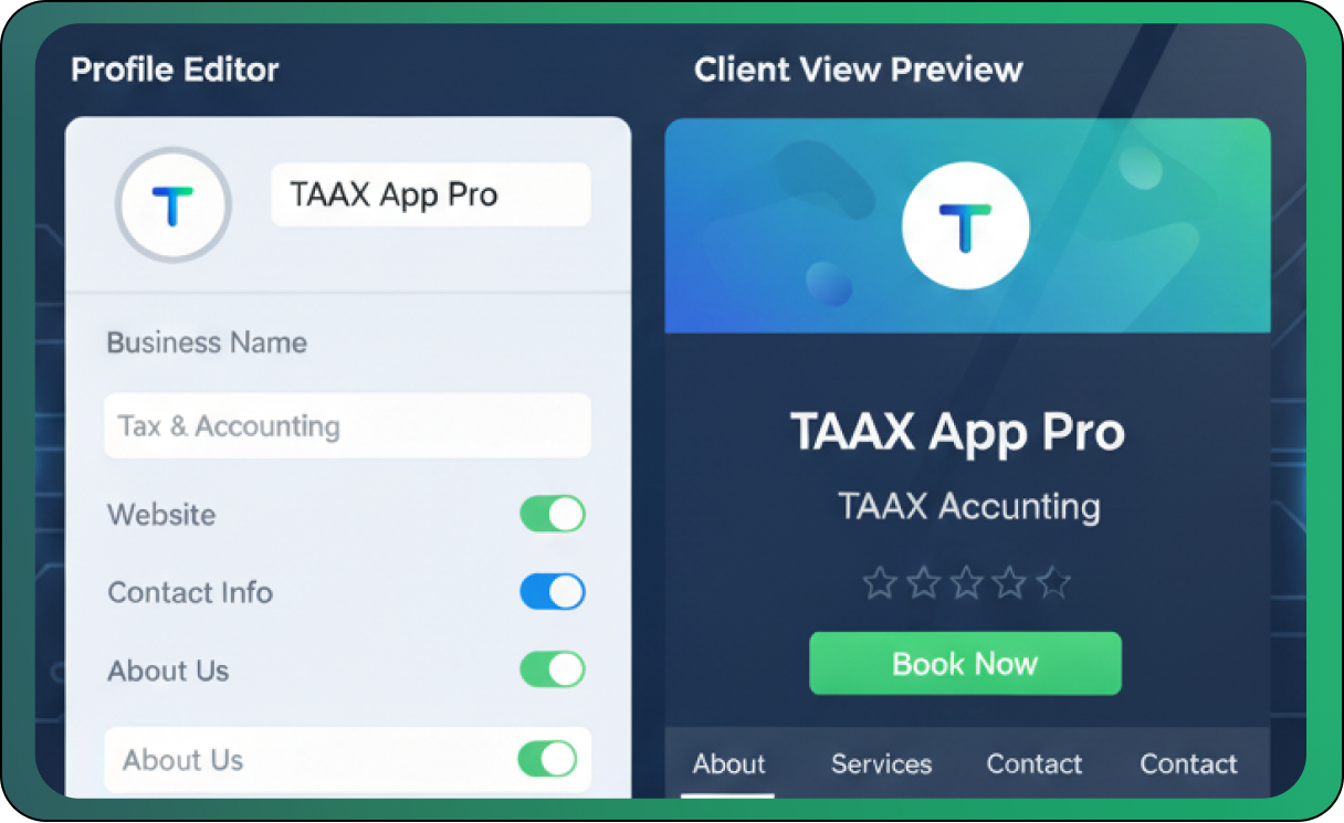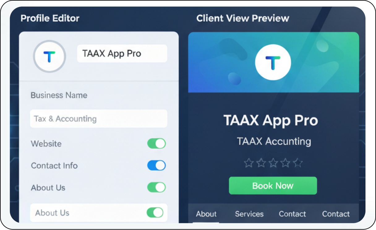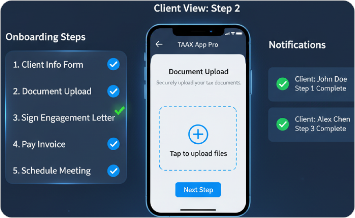 TAAX APP is your one-stop shop for success. Manage appointments, streamline workflows, connect with clients, and more – all from a single, user-friendly platform.
